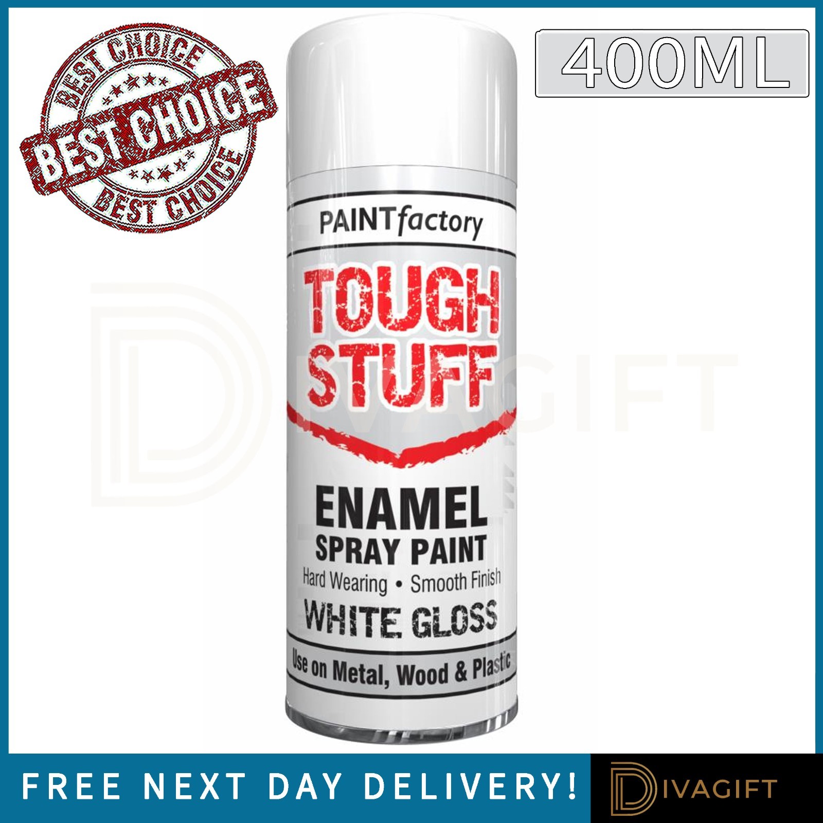 ENAMEL WHITE GLOSS SPRAY PAINT 400ML FOR WOOD METAL PLASTIC CRAFT TOUGH STUFF