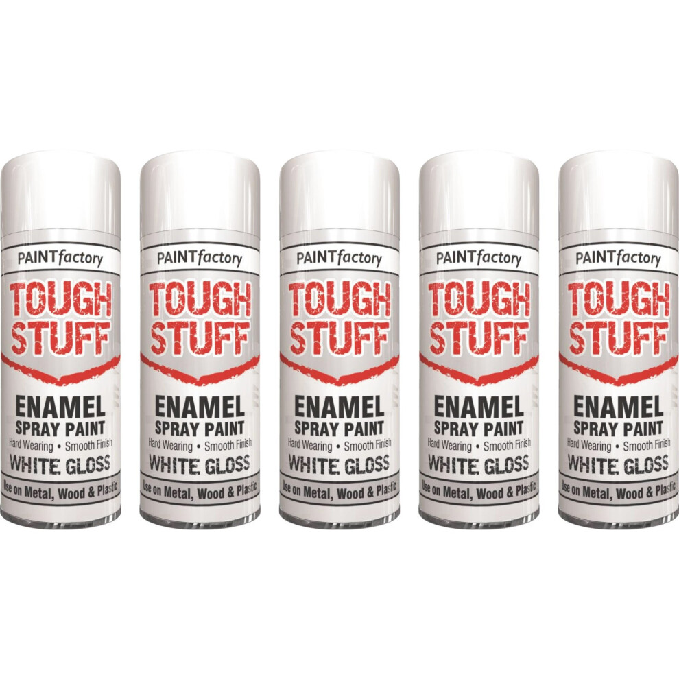 5 x 400ML Tough Stuff Enamel Spray Paint White Gloss Metal Wood Arts