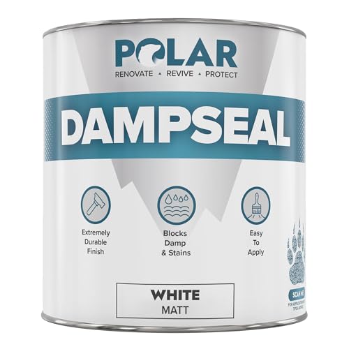 Polar Damp Seal Paint - Primer & Topcoat for Indoor Walls & Ceilings - Mould Resistant Stain Blocker Paint- Quick Drying for Wood, Plaster, Cement and Stone - Matt Finish - White - 1L