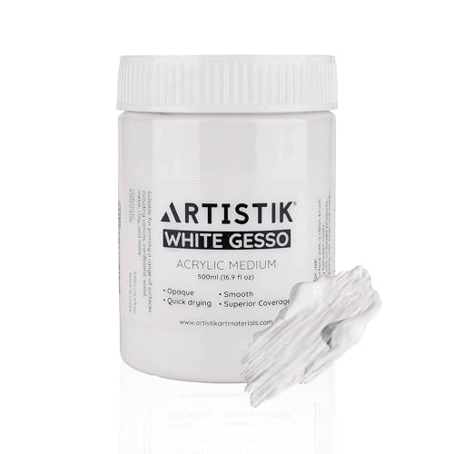 ARTISTIK White Gesso Acrylic Medium – 500 ml Professional-Grade Surface Prep Paint & Liquid Primer for Wood, Canvas, Paper, Cardboard, and Various Art Projects