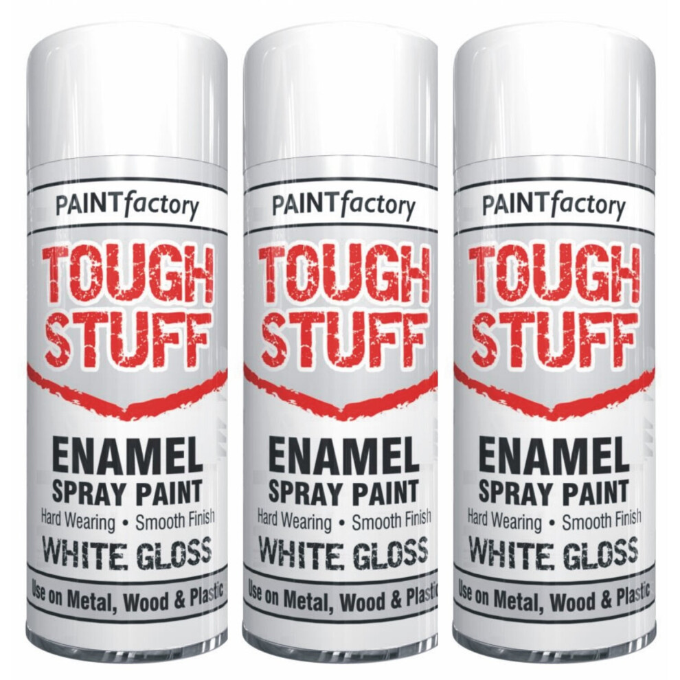 3 x 400ML ENAMEL WHITE GLOSS SPRAY PAINT WOOD METAL PLASTIC CRAFT TOUGH STUFF