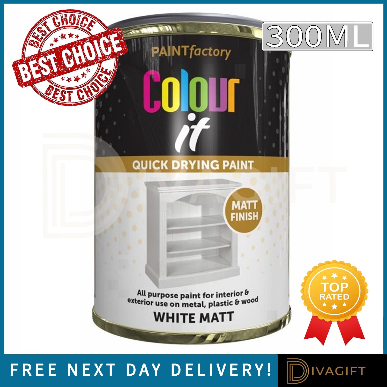 WHITE MATT FINISH PAINT 300ML INTERIOR EXTERIOR FOR WOOD METAL PLASTIC NEW