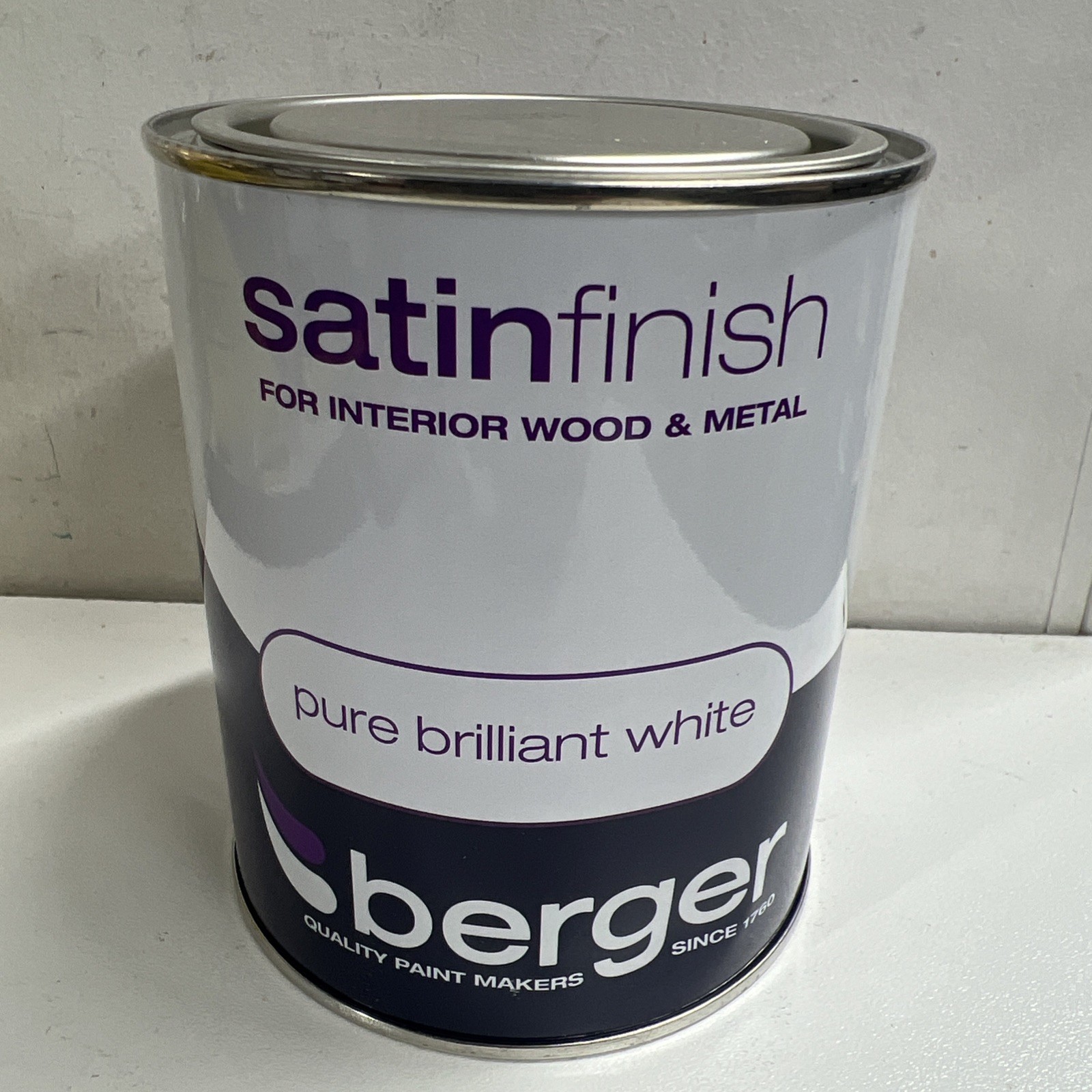 Berger Satin Sheen 750ml Brilliant White Paint for Interior Wood & Metal Use