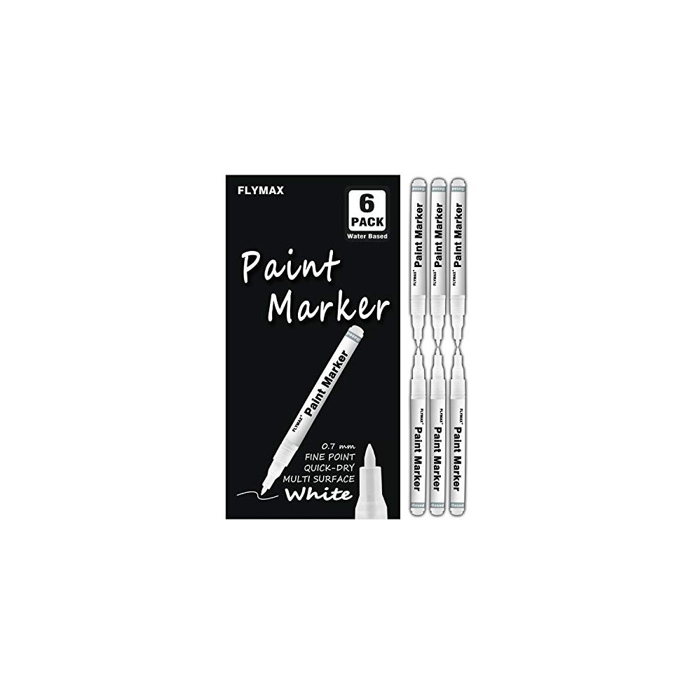 White Paint Pen, 6 Pack 0.7mm Acrylic White Permanent Marker White Paint Pens for Wood Rock Plastic Leather Glass Stone Metal Canvas Ceramic Mark