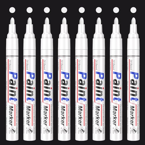 APOGO White Paint Pens - 8 Pack Oil Based Permanent Markers, Medium Tip, Waterproof Paint Marker Set for Rocks, Wood, Metal, Plastic, Glass, Mugs, DIY Craft, Touch Up