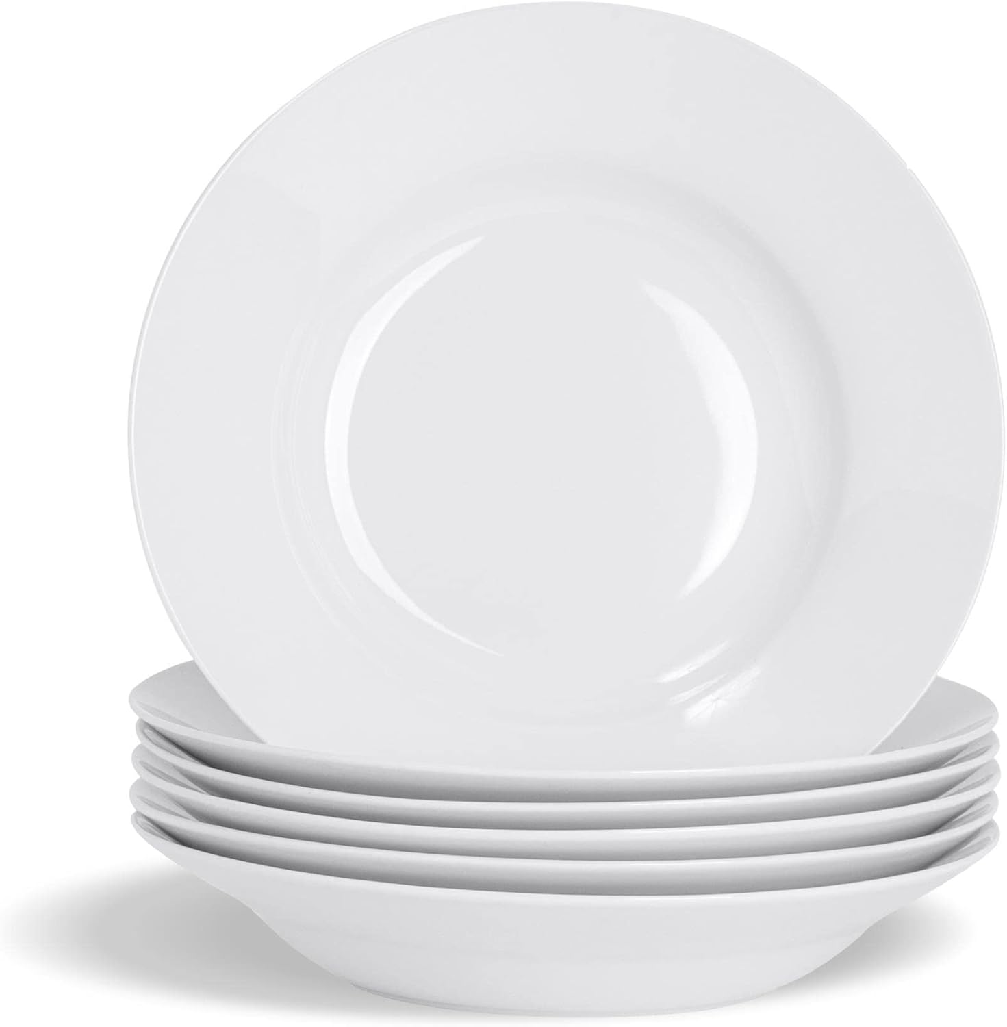 Argon Tableware 6X White Large Pasta Bowls - 25.5cm (10") - Ceramic Dinner Plates Dish Set Serving Noodle Bowl - Dishwasher and Microwave Safe