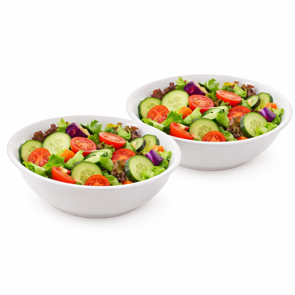 Set of 2 Large White Melamine Serving Bowls Round Salad Pasta Snack Mixing Bowls