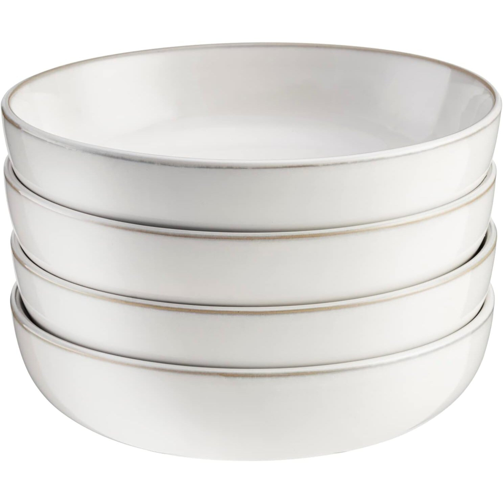 Kitchen Classics, Sturdy Healthy Ceramic, Microwave Safe, White Pasta Salads Bowls, Set Of 4, Easy To Clean And Timeless Design
