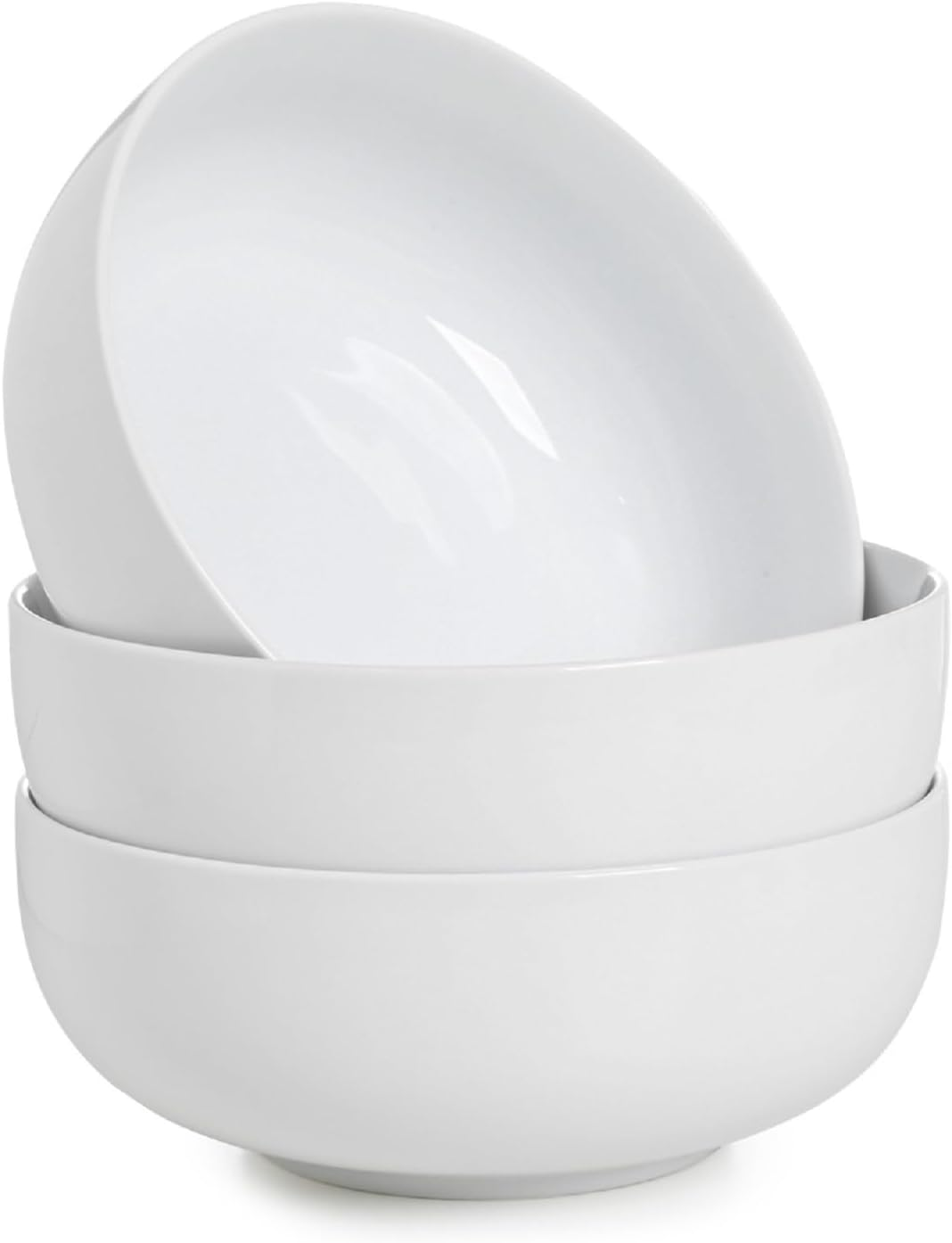 WishDeco Large Soup Bowls Set of 3, Ceramic Salad Bowls 1100ml, White Pasta Bowl, Serving Bowl for Noodle Ramen, Fruit, Dessert, Cereal