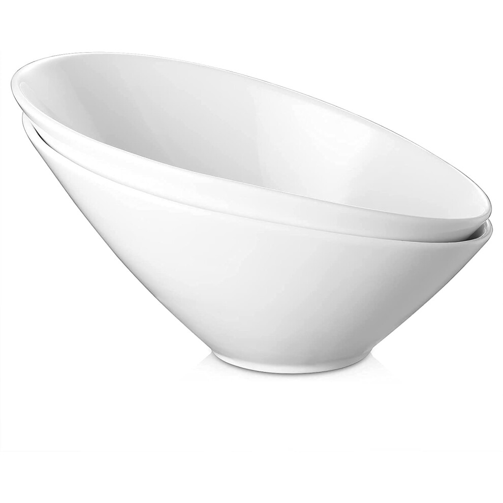 Salad Bowl 26 oz770 ml Serving Bowls Ceramic Set of 2 Porcelain White Slanted Bowls Christmas Serving Bowls for Salad Pasta Soup Prep Microwave