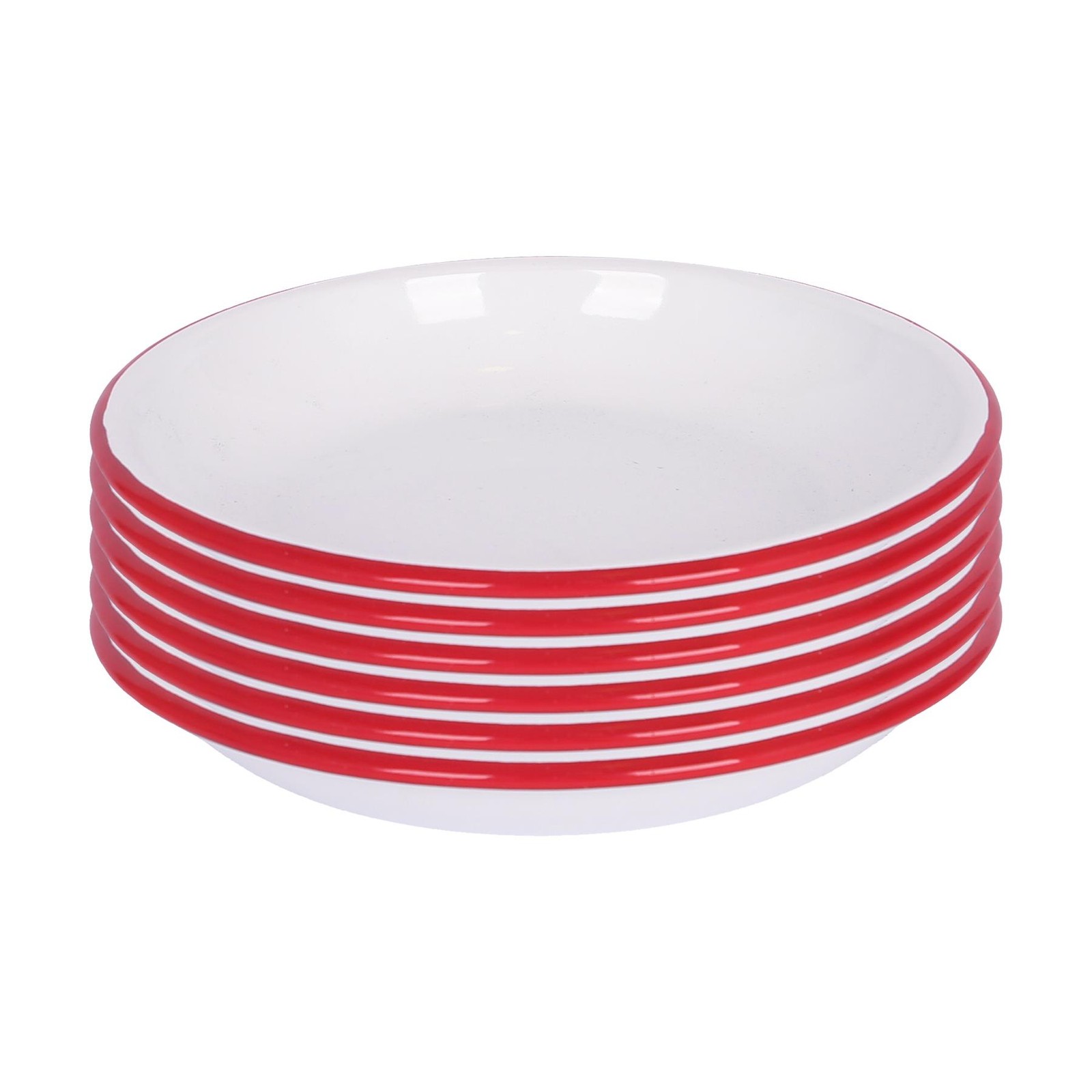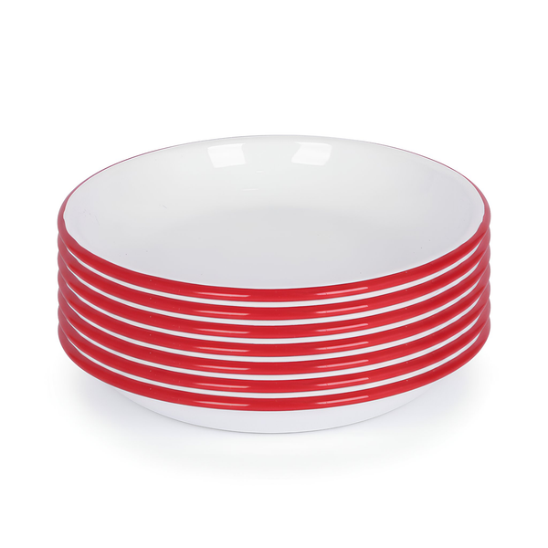 White Enamel Pasta Bowls - 20cm - Red - Pack of 6