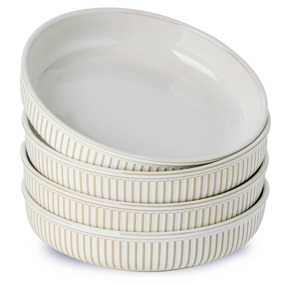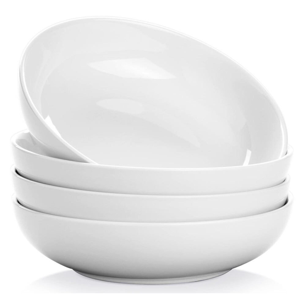 (As show, One size) 4-Pack Ceramic Pasta Bowls Large Salad Serving Bowls White Pasta Bowls Shallow Soup Bowl