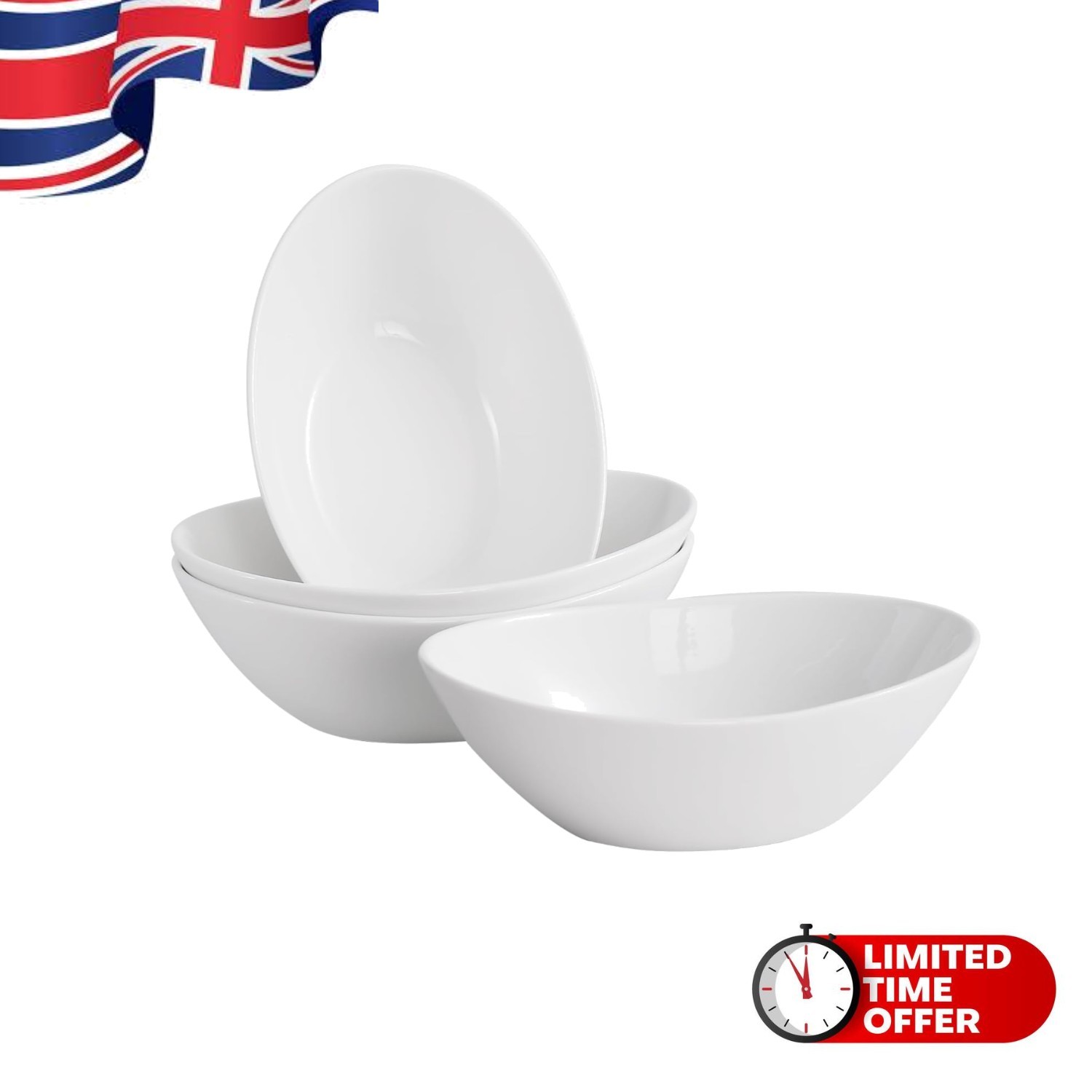 White Bowls Breakfast Soups Dishes Salad Pasta Dessert Porcelain Bowl Set of 4