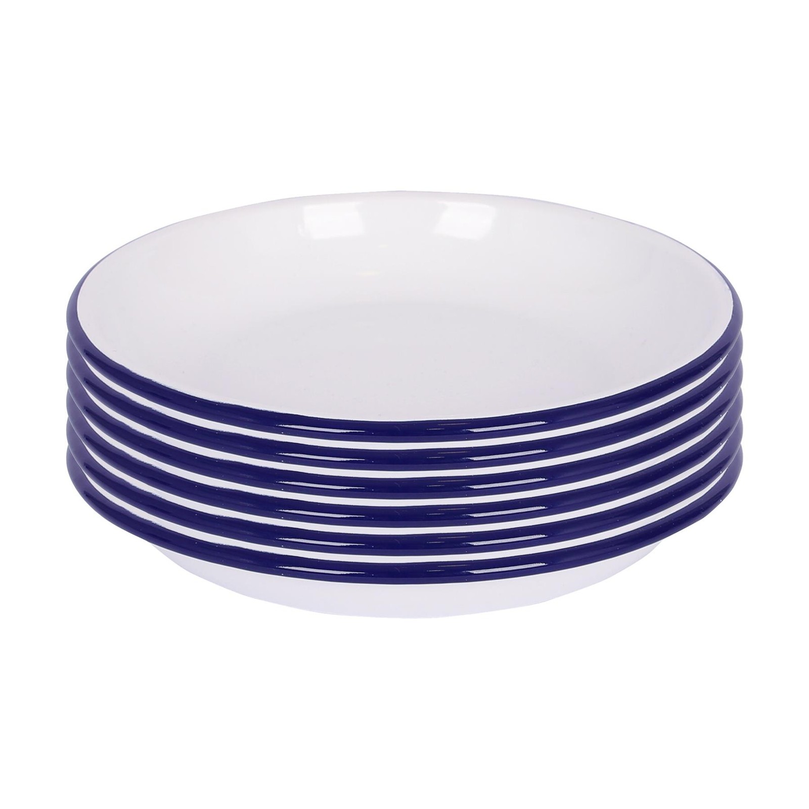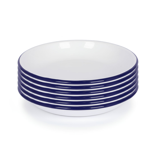 White Enamel Pasta Bowls - 20cm - Blue - Pack of 6