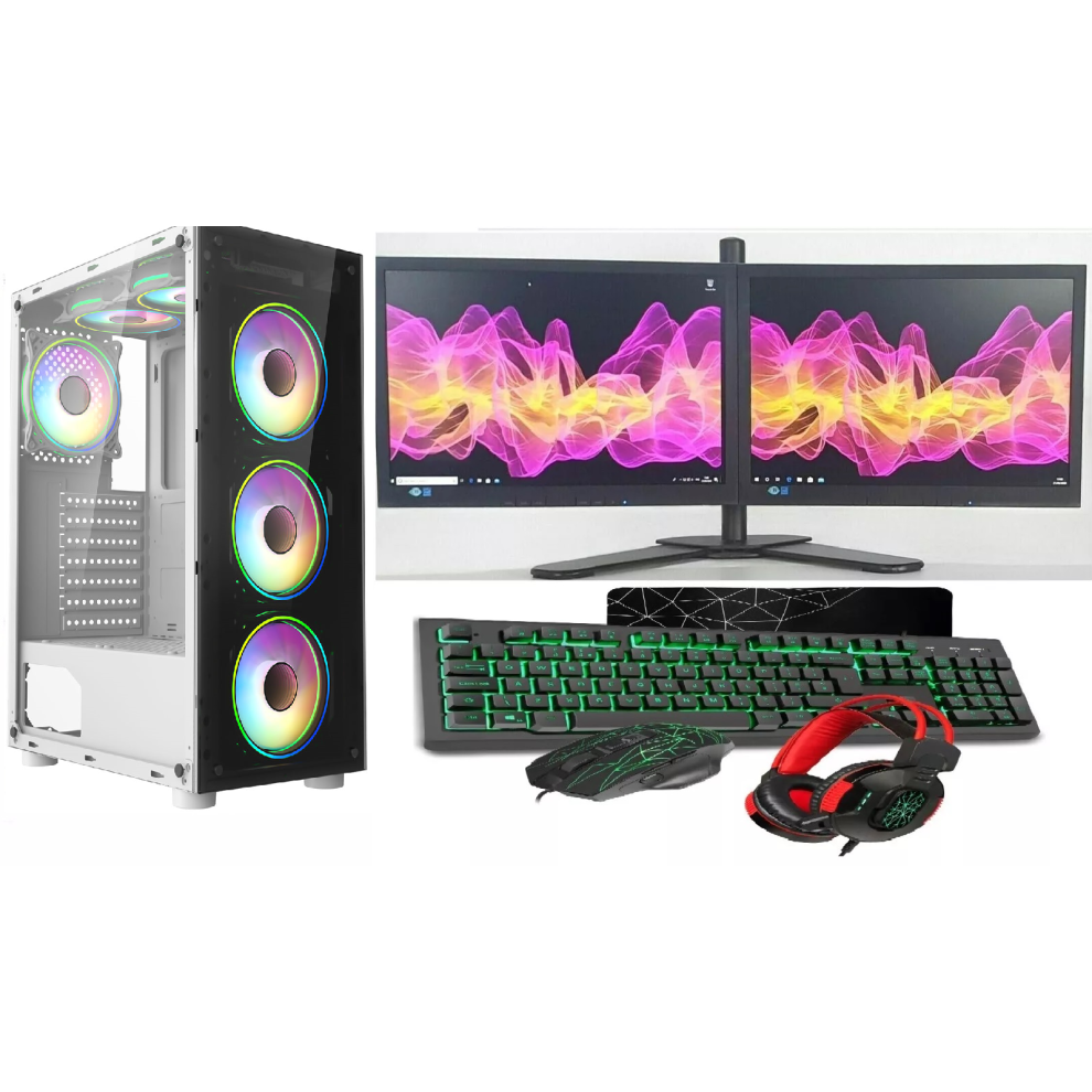 ASC Ryzen Gaming PC Dual Bundle, AMD Ryzen 5 4500, GTX 3050 6GB Graphics, 16GB RAM, 1TB SSD, Windows 11, White 6 Fan RGB Case, 2x22" Monitor Dual