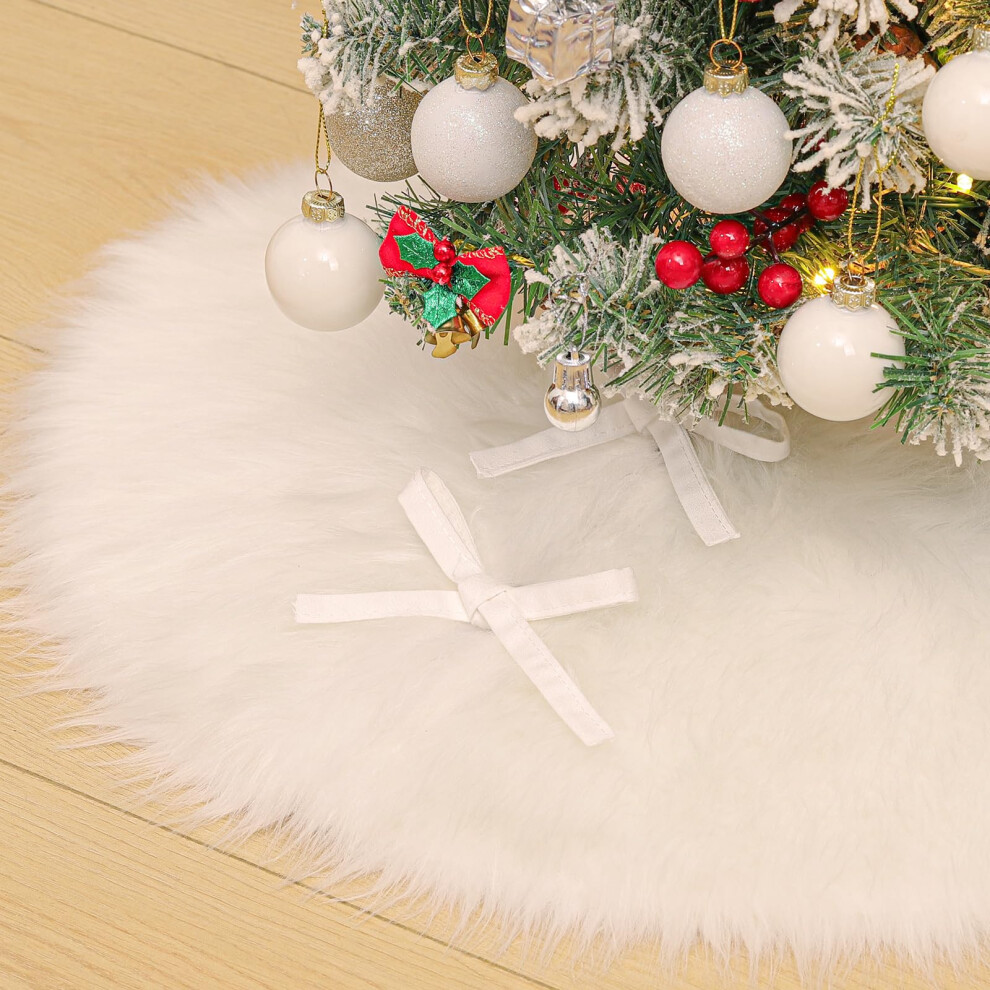 White Pencil Tree Skirt for Christmas Tree Decorations, Soft Thick Base Cover Luxury Faux Fur Mat