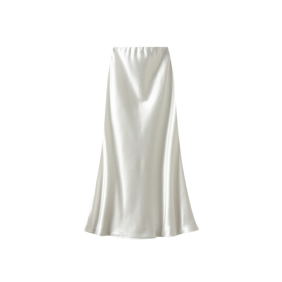 (White, M) Womens Satin Fish Tail Pencil Skirt With Elastic Waist For Wear Daily Elegant