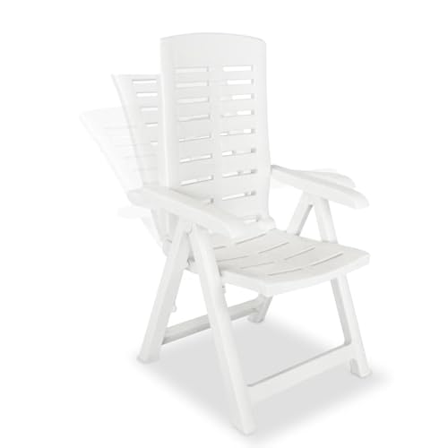 vidaXL Garden Reclining Chairs Set of 2- White Plastic Adjusting Backrest, Foldable, Lightweight, Space-saving, Weather resistant – Ideal for Outdoor, Patio, Garden Lounging