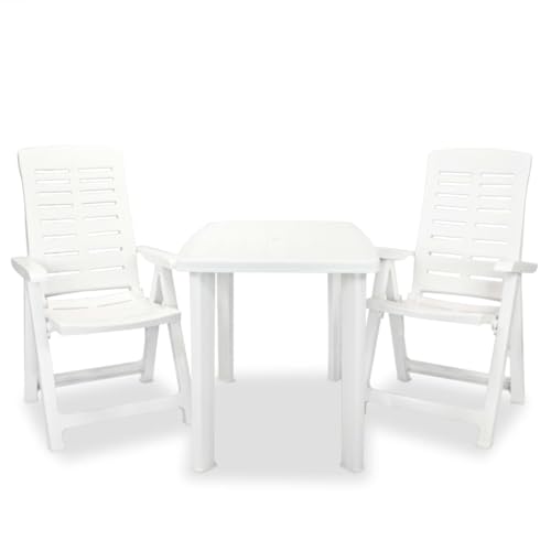 Teenpull 3 Piece Bistro Set, Durable White Plastic Patio Furniture, Weather-Resistant Outdoor Dining Table with Umbrella Hole, 2 Folding Reclining Chairs for Garden, Balcony, or Campsite
