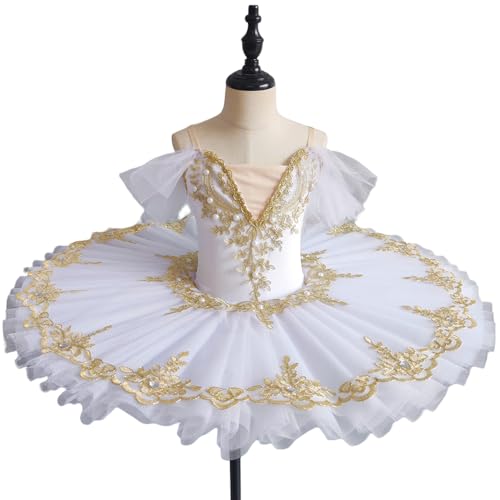 GeRRiT Professional Ballet Tutu Girls White Platter Pancake Tutu Ballerina Party Dress Adult Women Child Kids Ballet Dance Costume,White,150