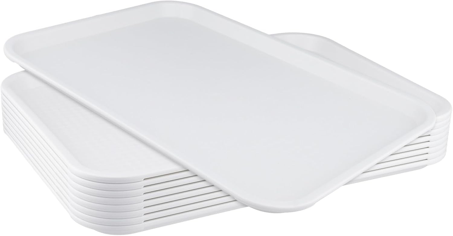 8 Pack Plastic Fast Food Tray, White Serving Tray Platter for Snacks Food Coffe