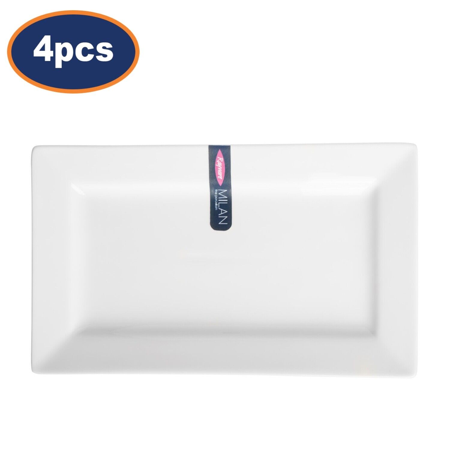 Serving Platter White Rectangle Fine Porcelain 25x15cm Modern Plate Tray 4pc Set