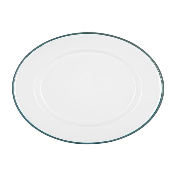 White Enamel Serving Platter - 30cm x 22cm - Green