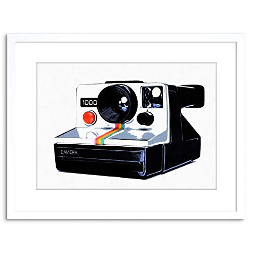 Wee Blue Coo Photo Painting Retro Style Polaroid Camera Cool Framed Wall Art Print