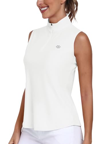 MoFiz Womens Golf Polo Shirts Sleeveless Tennis Golf Top UPF 50+ Quick Dry Lightweight Work Gym Sports T-Shirt with 1/4 Zip White Size M