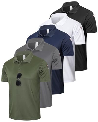 ZENGVEE 5 Pack Men's Polo Shirts Golf Polo for Men Adult Moisture Wicking Quick Dry Breathable Work Shirts Short Sleeve Multipack Tshirts Sport Top T-Shirts(0428-BlackGG Navy White-M)