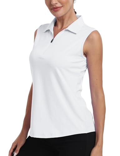 MoFiz Womens Golf Polo Shirts Sleeveless Gym Tennis Golf Top Summer Breathable Casual Work Sports T-Shirt with 1/4 Zip White Size US M=UK M