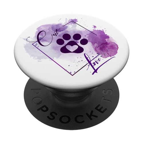 Cat Paw with Heart, Cat Love, purple white PopSockets Adhesive PopGrip