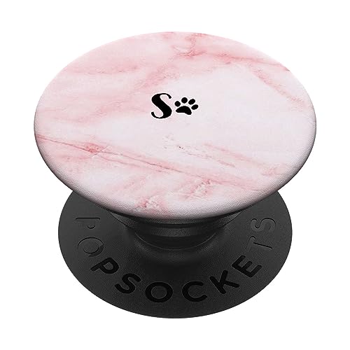 Black Initial Letter S Paw Print Minimalist Pink White PopSockets Adhesive PopGrip