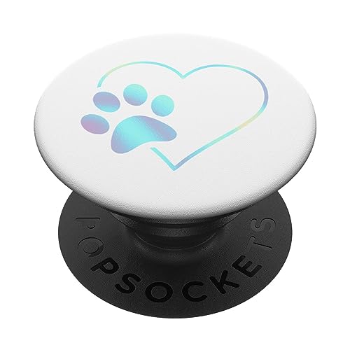 Rainbow Paw Print Heart Dog Cat White PopSockets Adhesive PopGrip