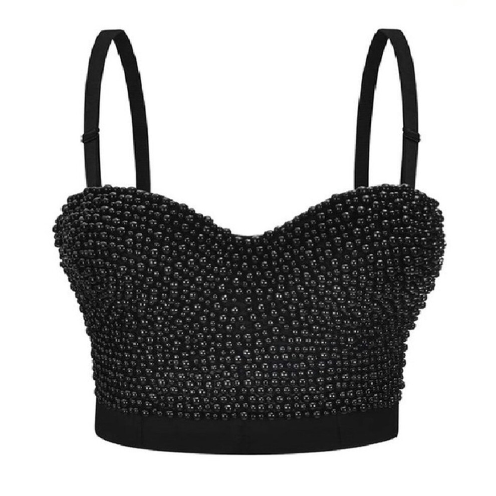 White Pearl Beads Push Up Bra Women's Corset Corset Sexy Cropped Tops Punk Rock Bar Nightclub Party ClothingBlackBXL