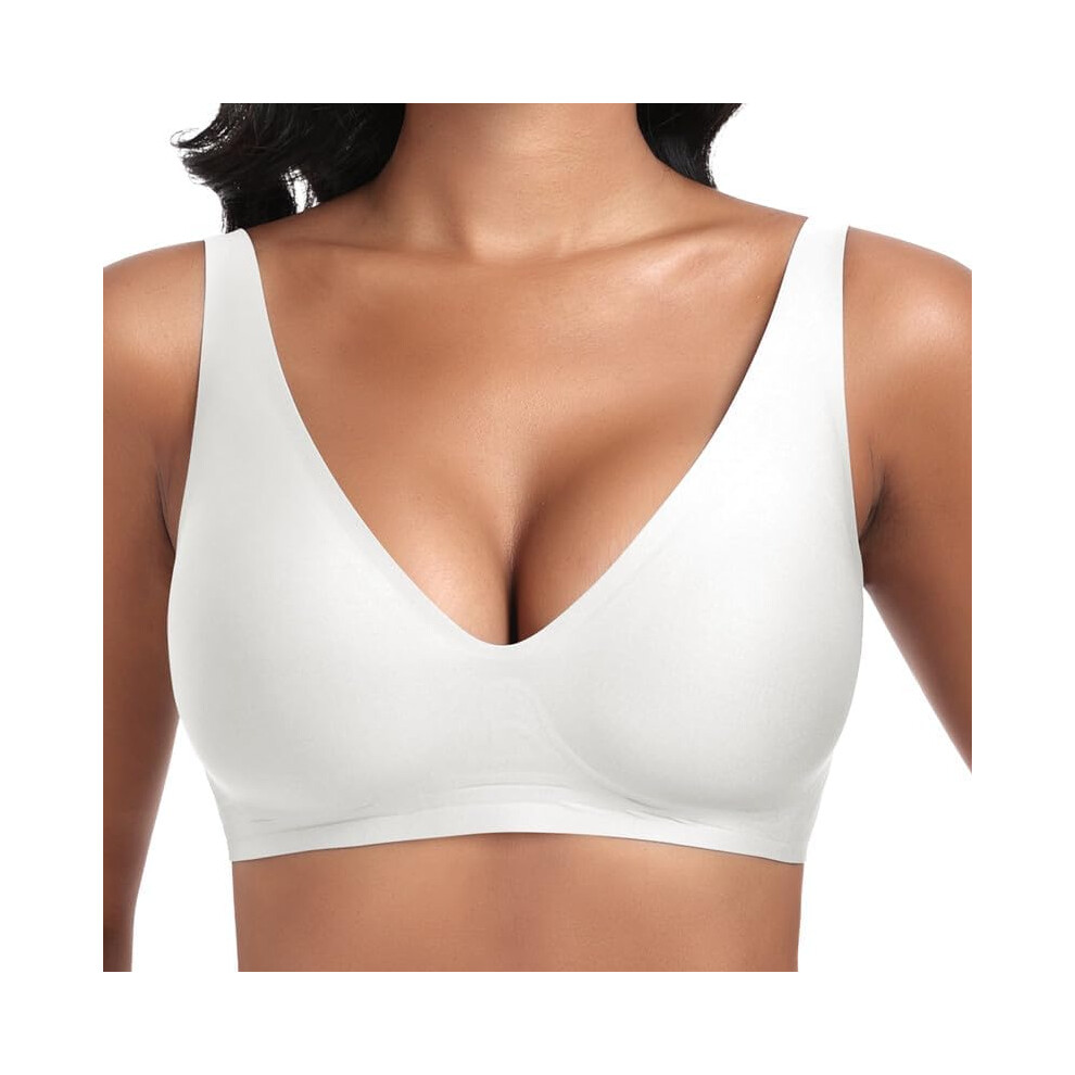 (M, White) Deep V Push Up Bra for Women Comfortable Bra for Large Breast Strong Hold Seamless Soft Bra Non-Wired Padded Smooth Bralette