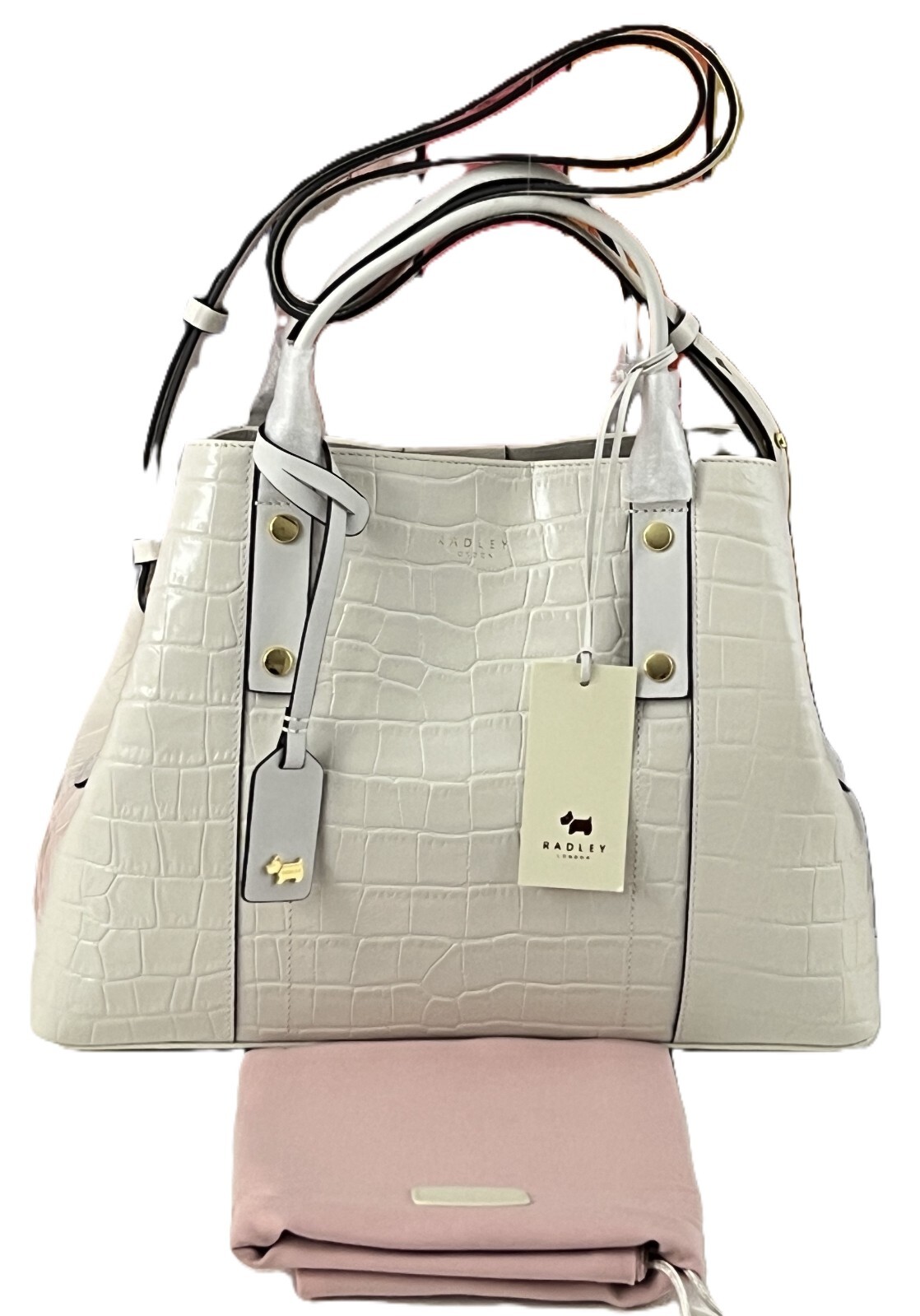 Radley Provence Street Faux Croc Cross Body Bag or Grab Bag White Leather Medium