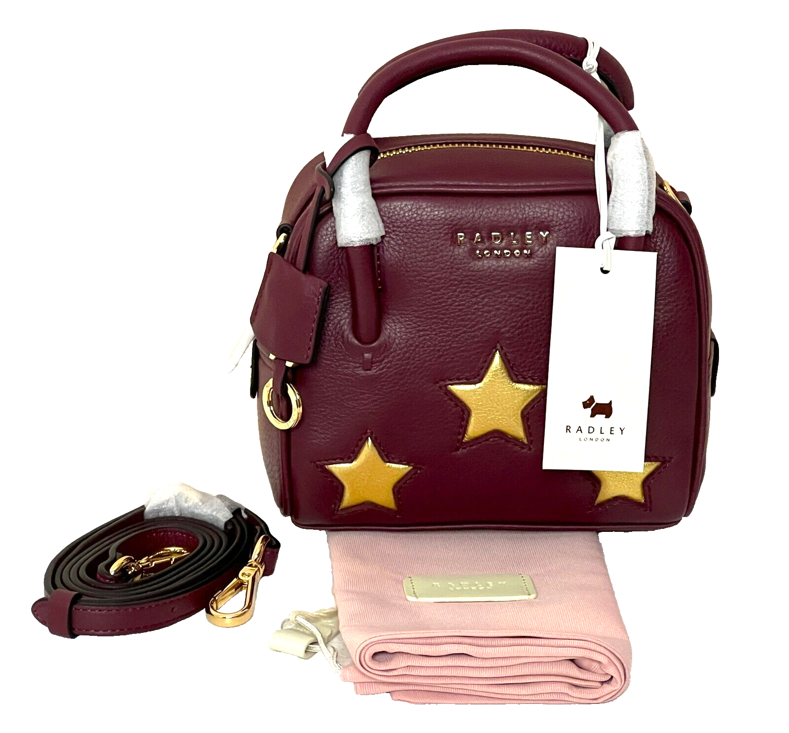 Radley Cross Body Bag Phone Bag Mini Starlight View Dark Cherry Red Leather New