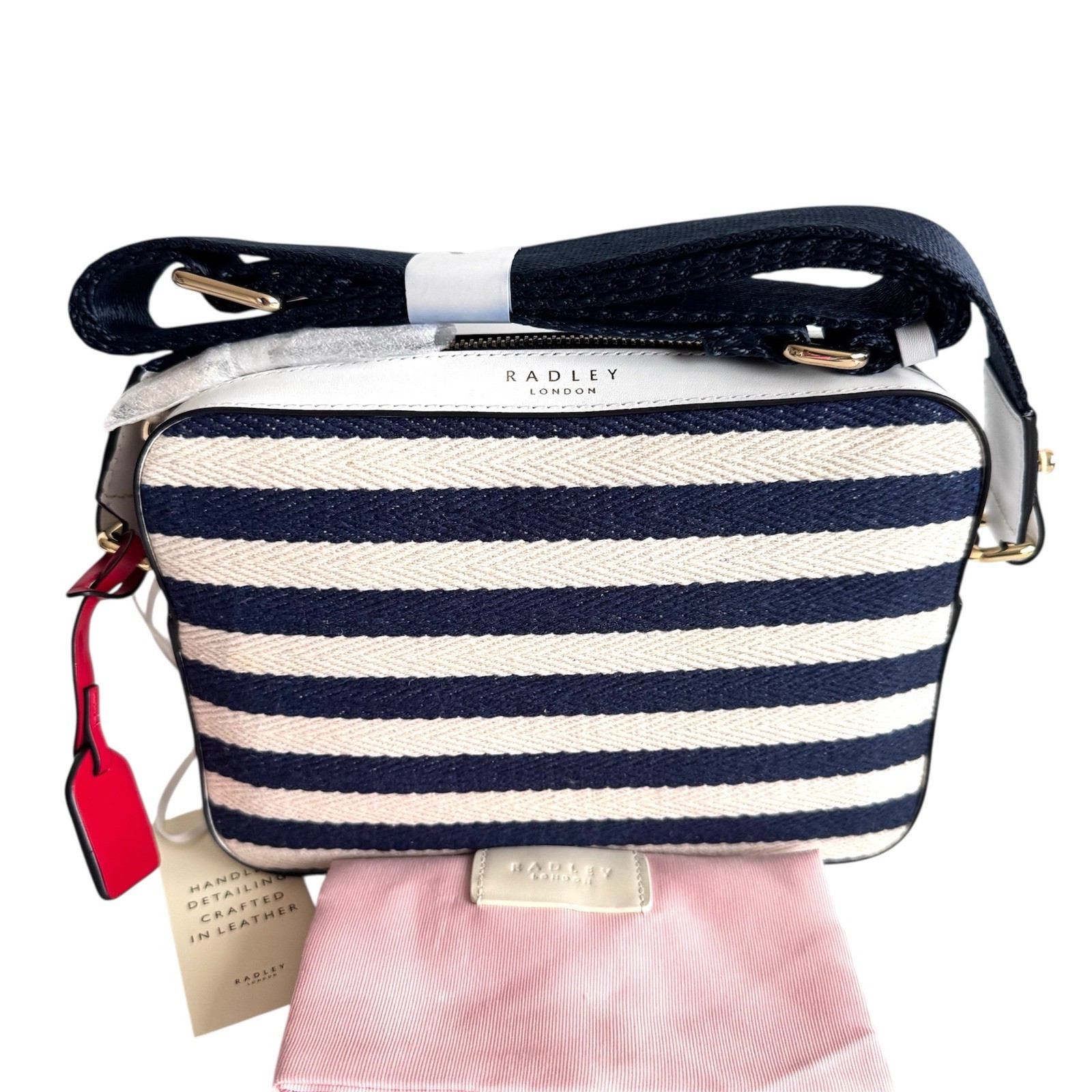 RADLEY Cromer Way Stripe Blue And White Small Zip Top Crossbody Bag New With Tag