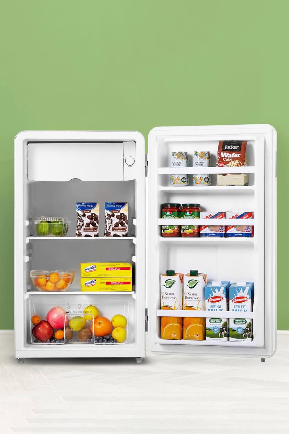 Cookology Retro Freestanding Fridge with Chiller Box, Self Closing Door (47L, White)