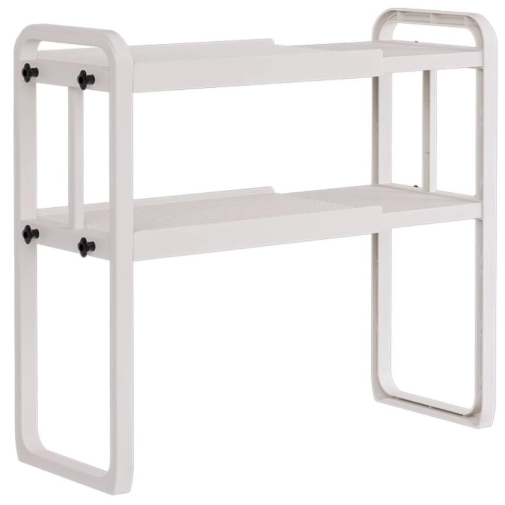 Kitchen Baker's Rack Expandable Metal Microwave Oven Rack Shelf, 2-Tier, White, Tableware Storage, Rice Cooker Stand