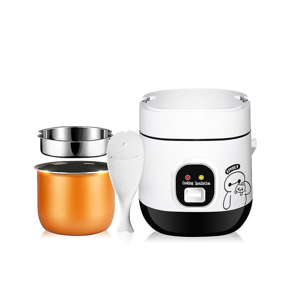 (EU, White) 1.2l Mini Rice Cooker 2 Layers Steamer Multifunction Cooking Pot Electric Insulation Heating Cooker Food Container Lunch Box