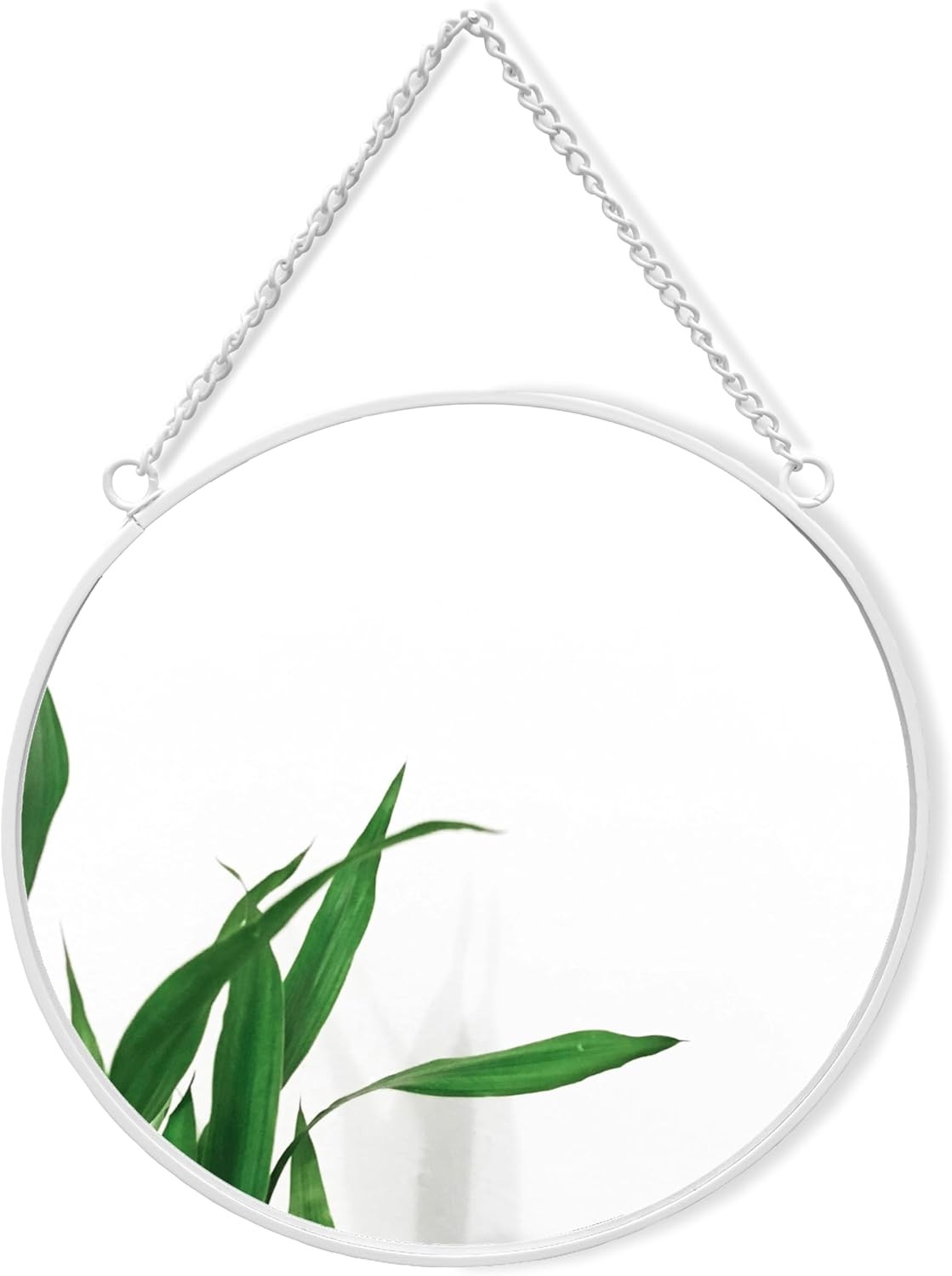 GreyZouq White Round Mirror 25 cm, Round Vintage Circle Metal Framed Wall Mirro