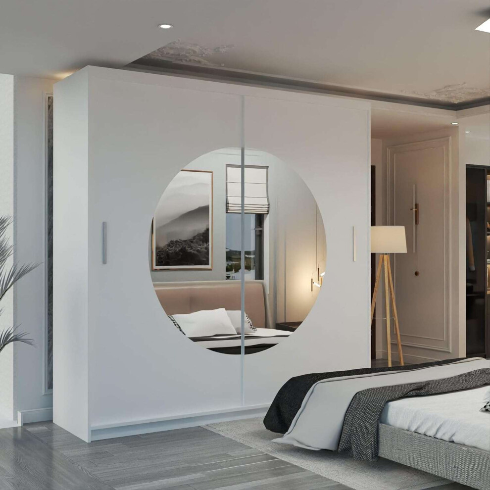 (White, 203cm) Round Mirror Sliding Wardrobe
