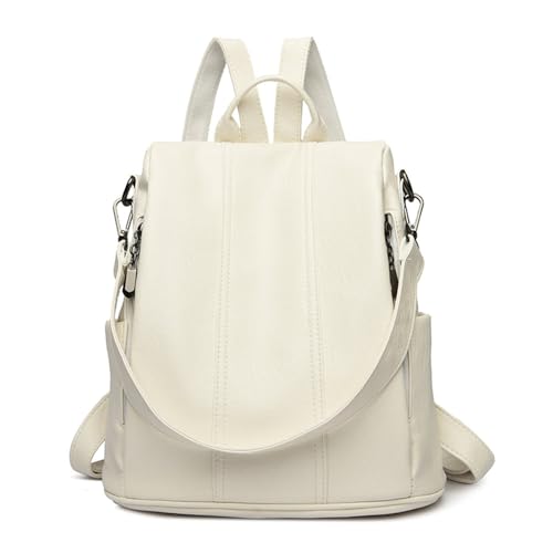 EGHFIXSD Anti theft Backpack Purses Soft Leather Female Vintage Bag School Bags Travel Bagpack Ladies Bookbag Rucksack,White,30cm 31cm 16cm