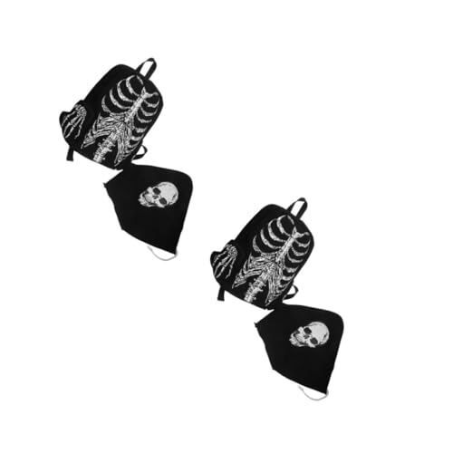 Healvian 2 pcs Skeleton Print School Backpack for Teens Black White Outdoor Sports Rucksack with Breathable Adjustable Straps Large Capacity for Laptop Books and Daily Accessories for