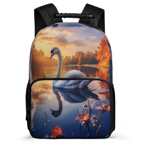 TPISLI Swan Primary School Backpacks for Teen Boy Large Capacity Girls Casual Daypack White Swan Rucksack 15.7inch School Bag Bookbag with Front Pocket