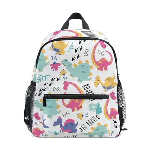 Mnsruu Kids Toddler Backpack Cute Dinosaur White Cartoon Preschool Rucksack Kindergarten Bookbag Travel School Bag for Boys Girls