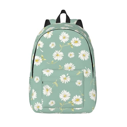 soldwellsd School Backpack Green White Daisy Flower Rucksack School Bookbag Casual Daypack for Women Men College Student Travel Hiking 18 Inch