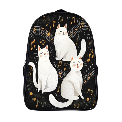 kaiyun White Cat Backpack Rucksack Lightweight with Musical Notes School Bag for Boys And Girls Kids Bags Christmas,Back to School Gift,16 inch